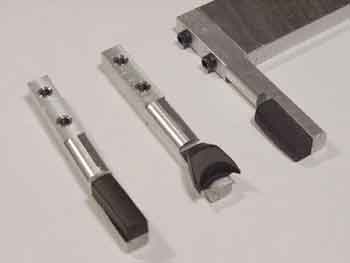 The photo to the left shows the electrodes to make the desired shapes for the intake runners. On the left and right are the side runners and in the middle, the boost port runner. I'm using aluminum as a holder for the graphite electrodes that were SUPERGLUED on for ease of holding and machining on conventional and CNC machines.