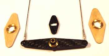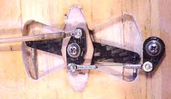The other pieces of my controls are shown to the right, note that the elevator/fuelshutoff bellcrank is keyed, the main bellcrank is also, these items will be glued together as it's installed into the wing, total weight of what is pictured is 4 gm.