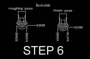Step 5: Flip part to start work on the bottom, this is where we use the 1" shank to hold the part. Set right edge at x + .600, we'll need a 1/2" endmill, 1/4" stub carbide, spot drill, and a # 43 drill for the engine hold down bolts. The width is the same as a TD but seperation allows the use of a Cox speed pan by drilling two additional holes into the pan and using two exsisting holes.
