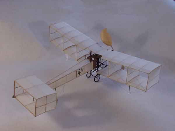 AMA Scale 14 Bis, 16 inch wingspan and 9.5 grams without rubber. Designed by Santos-Dumont in 1906 was the first engine-powered, heavier-than-air machine to fly in Europe.