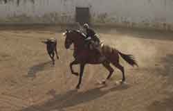 Later that afternoon the tour bus came where we meet the other quests and traveled to Vale Dos Lobos, a training facility for both matadors and to weed out bulls for the fights. The animals are not killed in this country verses Spain and Mexico, one photo shows the 'catchers', the guy with the funny hat leads until the bull charges and the others join in to hold the animal so the barbes, that the madador inpaled, can be removed, cool action here.