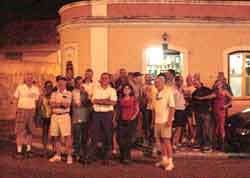 To the right is a photo atop a castle in Santarem with the racing competitors and their wifes after our visit from the wine tasting, on the left, is a shot outside the Taverna Do Quinzena were we had a complementary dinner with a variety of local food.