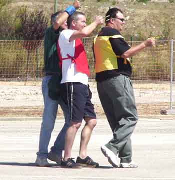 On the left is Martin Worgan making a catch to pit his British Goodyear entry and to the right is John Mealing with his. Below right is Dave Walick catching his Nationale entry and on the right below is Epp Buys pitting Julio's British Goodyear entry