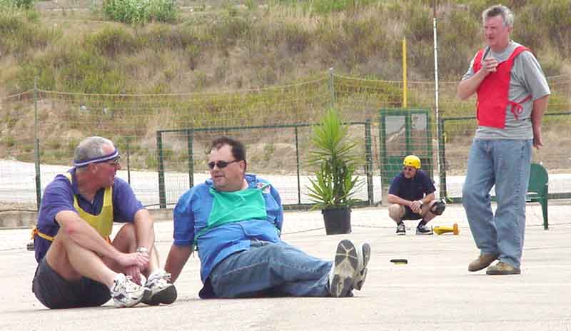 On the left is Steve Wilk catching his Nationale entry. Below is Dave McDonald hanging out with Tony Toogood during a Nationale heat race, both entries had problems which gave Lyn Morrall a solo run. Dennis Ward, in the background with his entry, minus the torn out gear.