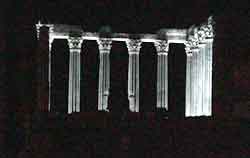 To the far left is the Diana Temple built in the 1st century A.D. On the left shows one of the norrow streets in the cty, and above is the of the many churchs that are found throughout the country.