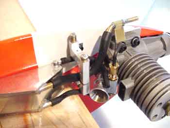 Next is some of the hardware, fuel shutoff/overflow switch and, the controls weight 8.3 gm combined. Bellcrank is carbon fiber with bottons for direct line attachment, down on the pushrod is an adjuster for the fuel cutoff cable.