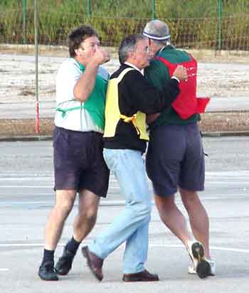 On the left is Steve Wilk catching his Nationale entry. Below is Dave McDonald hanging out with Tony Toogood during a Nationale heat race, both entries had problems which gave Lyn Morrall a solo run. Dennis Ward, in the background with his entry, minus the torn out gear.