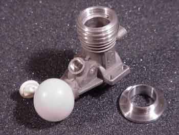 Machine a threaded adaptor to the print, this will be glued in with JB Weld after you've removed .050" from the back of the engine case. This adaptor will work for either the metal or new plastic reed valve version tanks. Expand a ballon inside the shaft bore to keep epoxy from the bearing surface when filling the front intake hole, use tape over needle valve holes to keep from flowing out. Tape over intake on shaft and also fill with with JB Weld.